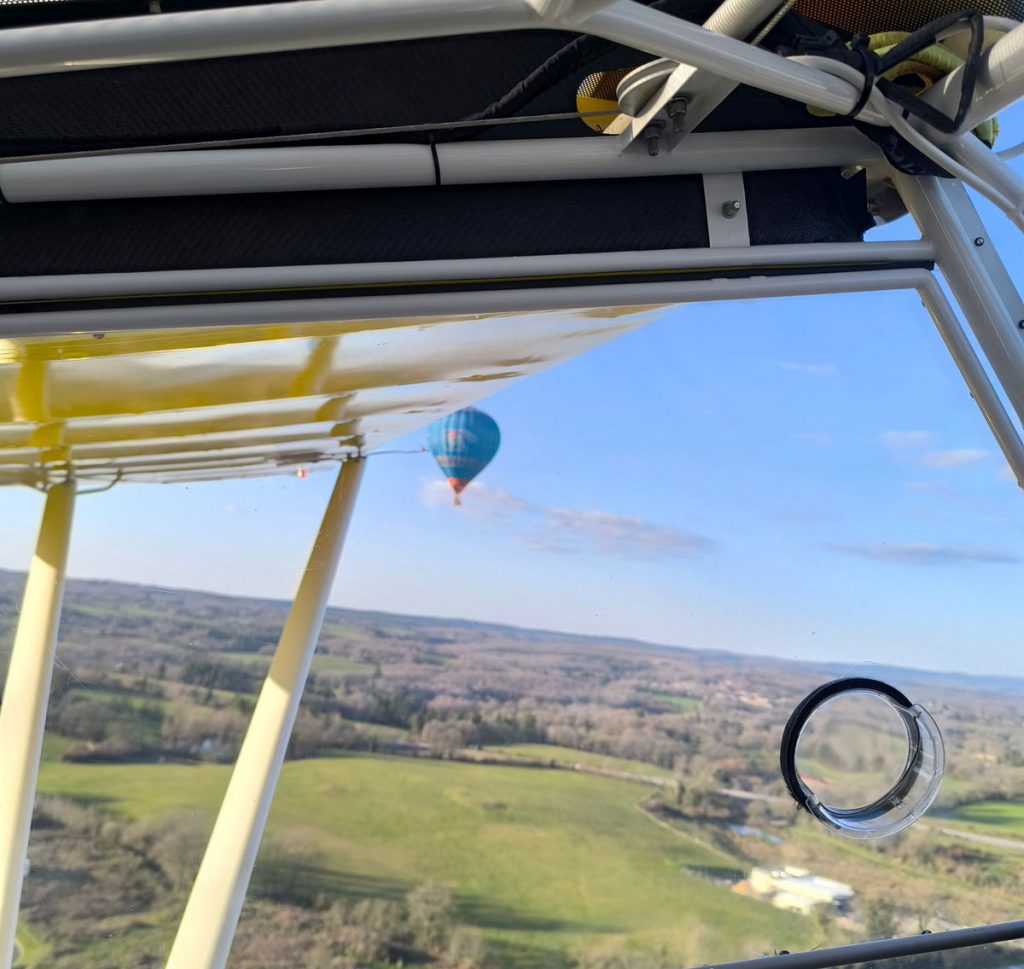 Ce mardi 3 mars 2026, après un briefing au sol entre l’aérostier et le pilote du Super Guépard, une montgolfière a clôturé la journée en beauté en s’envolant de l’aérodrome de Saint-Junien. Porté par les lueurs du couchant, le ballon a offert un ballet paisible au-dessus de la vallée de la Vienne, marquant avec élégance le retour des vols printaniers.